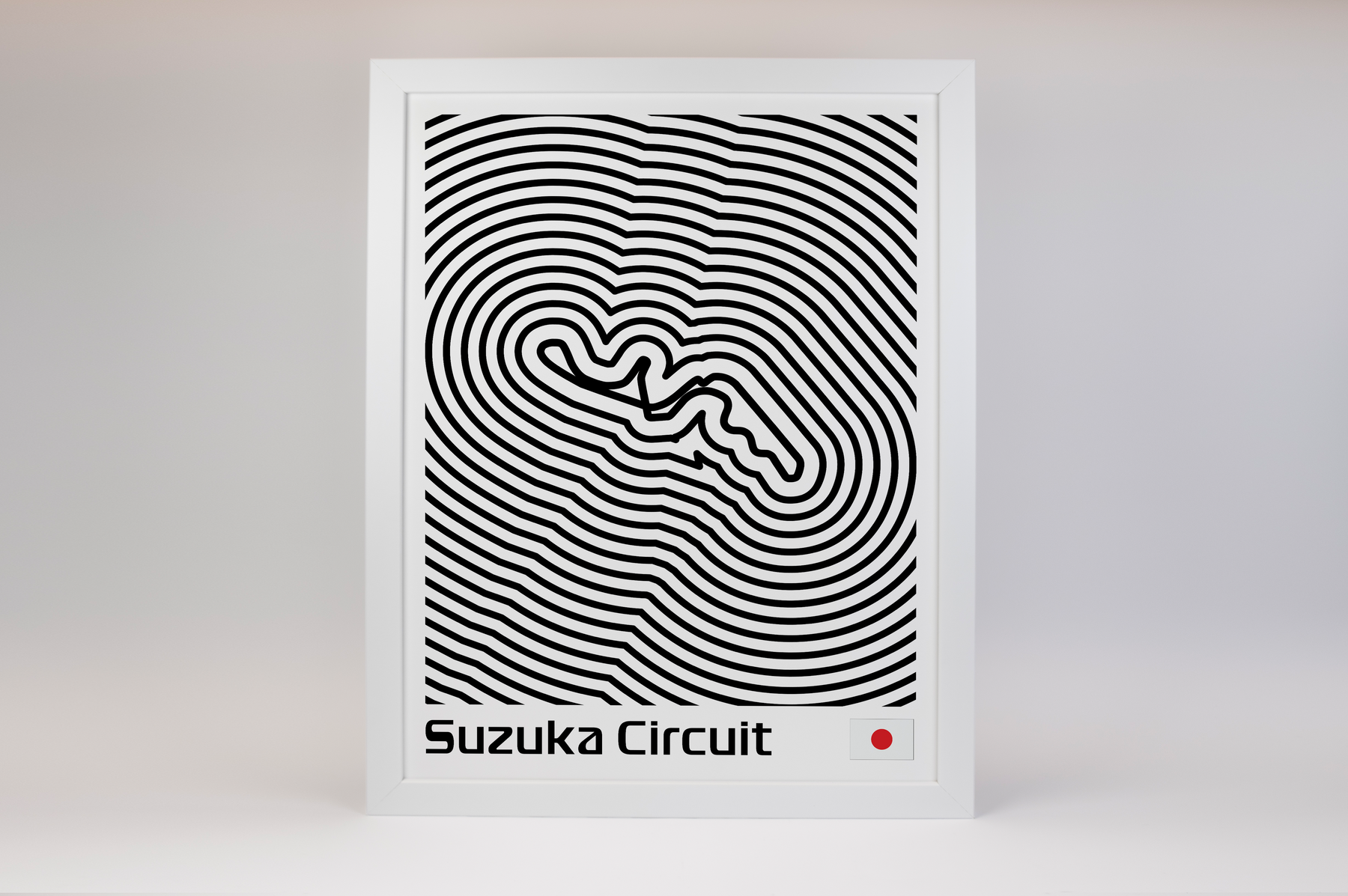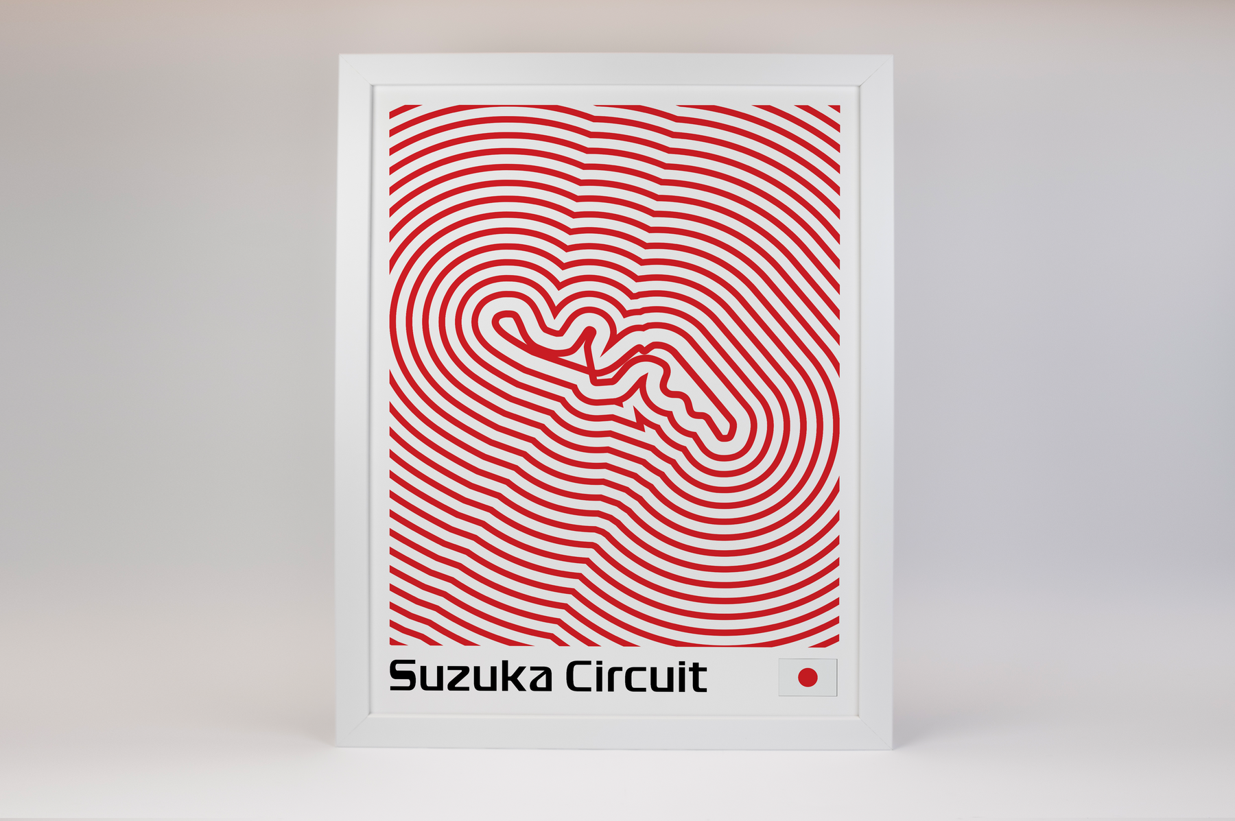 Celebrate your passion for Formula 1 with a bold, minimalist poster of the Suzuka Circuit.